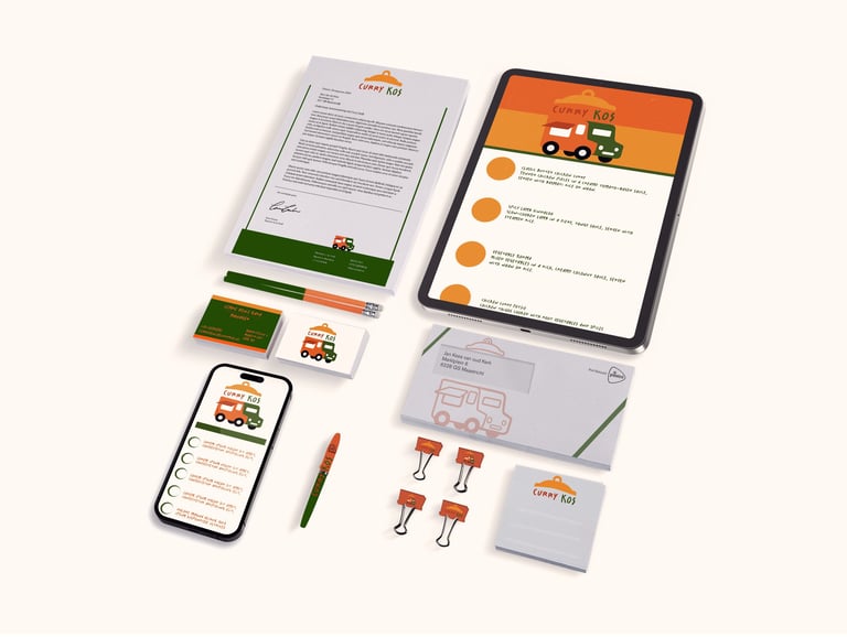 A visualization of the food truck branding utilized, assisting the house style and brand identity.